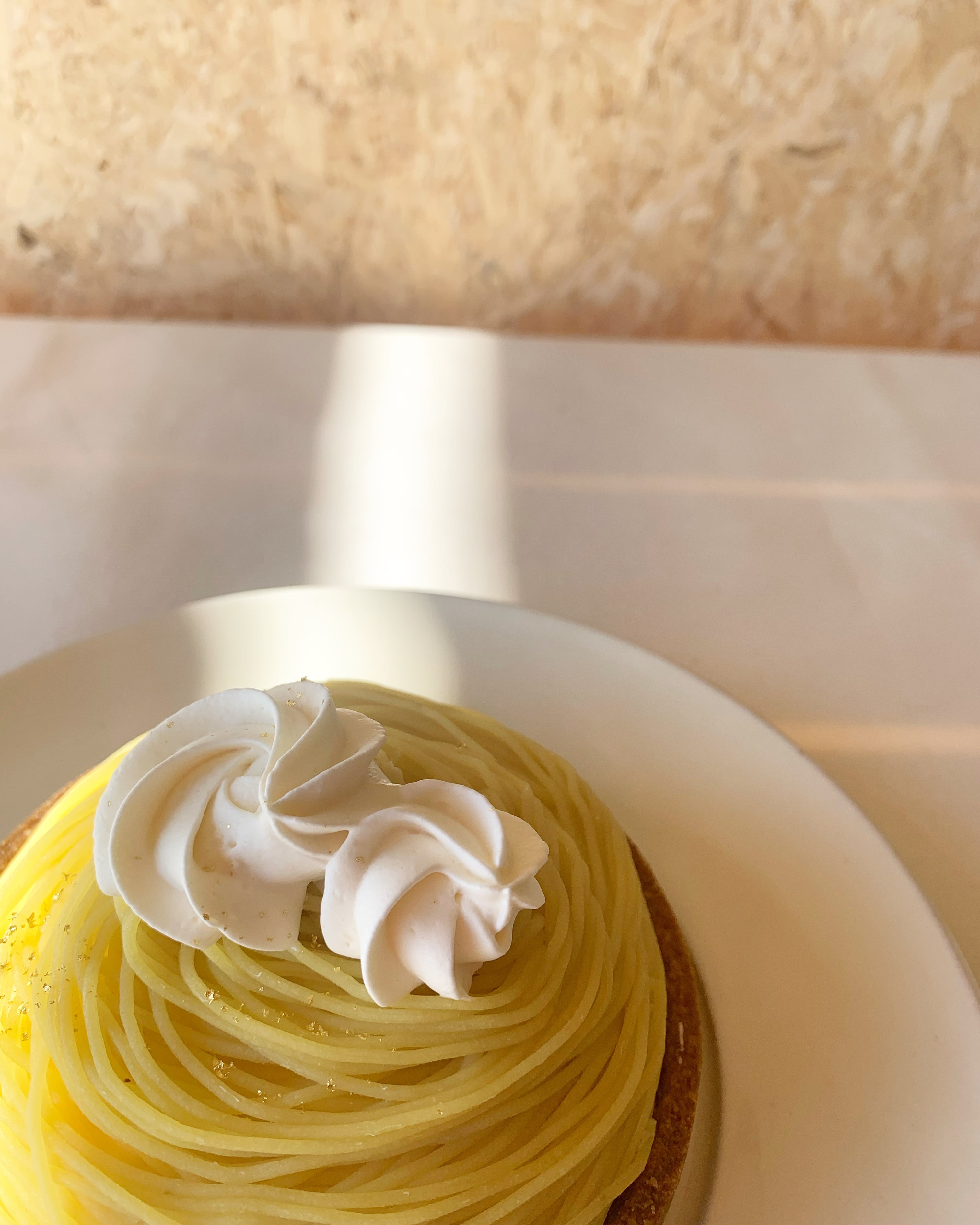 ベースとなるタルトの台は北海道産小麦、国産バター、きび砂糖を使用したパートシュクレ。アーモンドのクリームを敷き込んで焼いています。