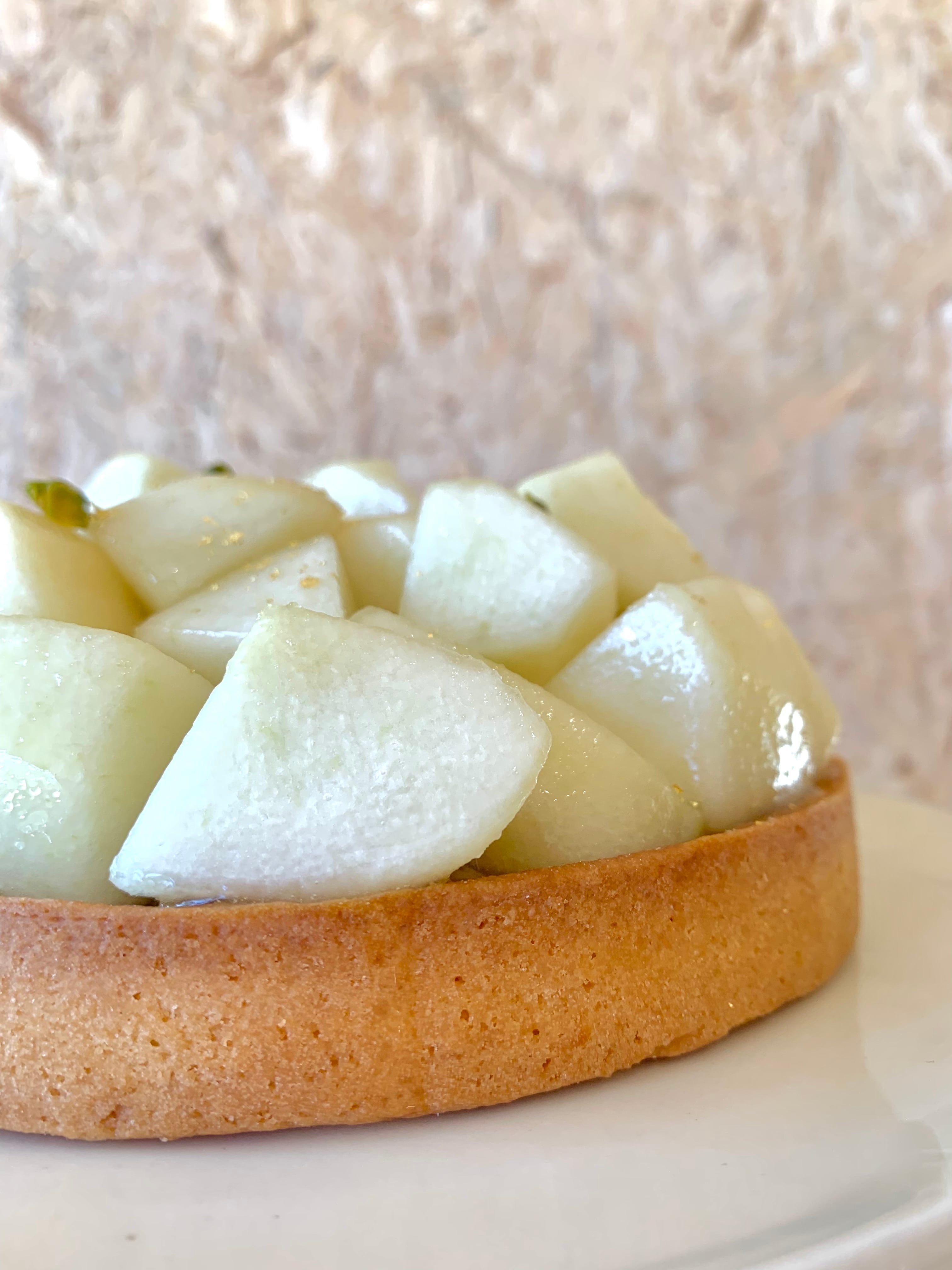 シロップに浸けてぽってりとしたラ・フランスと、香りの良い濃厚カスタードが秋を感じさせる。
